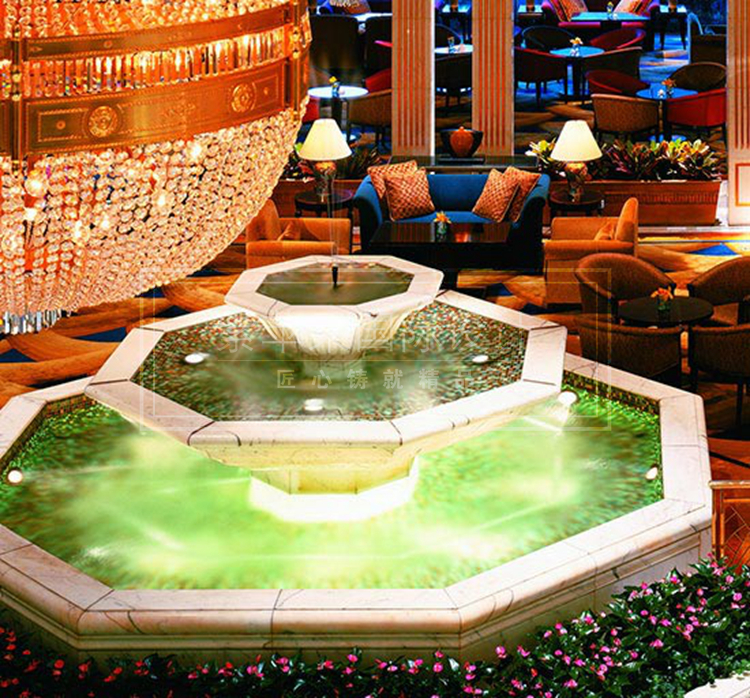 现今室内水晶喷泉的设计主要是由这几种,壁泉、叠泉、雕刻泉、盂泉,现今室内采用比较多的喷泉水景设计就是这几种。再设计室内水景喷泉的时候,水道需要加上衬垫薄膜,而且室内水景喷泉造型简单,通向池塘入口的喷泉水景是最适合的小型池塘内水的循环。而还有一种就是利用平石,石板形成的石块微微的向池塘倾斜,水流通过室内水景喷泉,相当轻缓地滴落入池塘或温柔地滑进池塘。