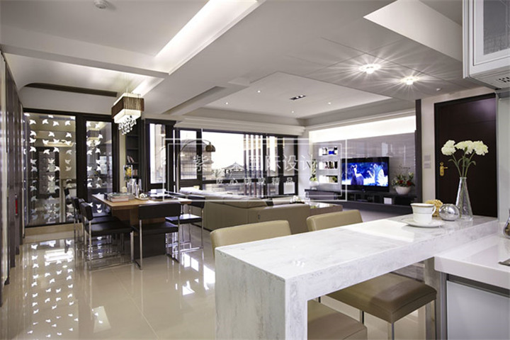 黑白灰的设计让整个居室简约而不简单,简练而不单调,而工业风的主元素也在其中大幅运用,更是彰显了其时尚潮流的特性。整体空间高低层次分明,线条流畅,大气简约,于工业风中又流露出一丝丝的精致。