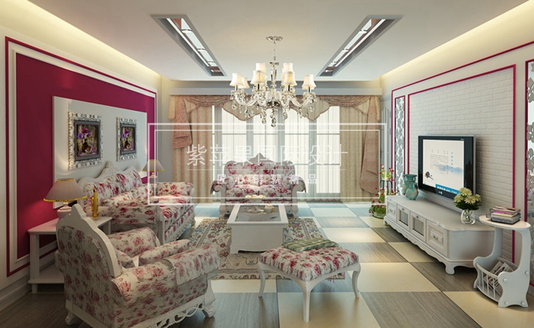 淡淡的嫩粉碎花于布艺上绽放,妆点出甜美的早春气息。窗帘、抱枕、餐布、帷幔都可以穿上碎花衣裙,清新、浪漫却不浮华。碎花元素将浓浓的浪漫情怀和幸福感蕴藏于独具匠心的设计中,优雅扶手如花蕊般绽放的卷曲扶手造型,搭配精致雕花,唯美浪漫。宽厚柔软。欧式水晶吊灯的点缀轻奢高贵中不失优雅迷人。