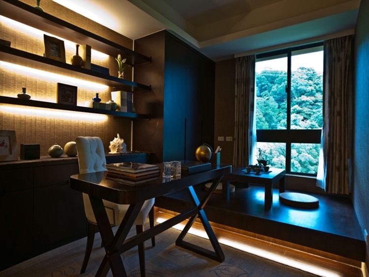 书房的设计,设计师采用最经典、最简单的颜色搭配——深沉大气的黑色大理石台面与白色烤漆面板橱柜,独特的日系风格榻榻米设计多了几分日系的小清新,整个书房的设计简单纯粹不失时尚感,绝对是一种享受,间隙溜进的阳光投射出的光影恍如身处异世,安静恬淡。