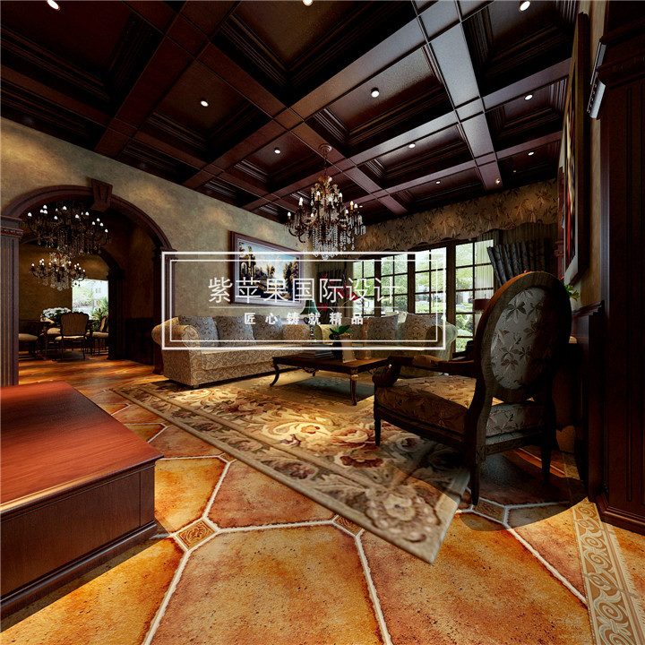 桌椅家具追求舒适实用的功能性,材质及色调上都表现出二次做旧的质感和年代感。不过分强调繁复的雕刻和细节,比金光闪耀的欧式风格更加耐看。娱乐室麻将机的搭配,又将中式古典和美式古典相结合,东西方古典文化互相交融,气质尽显。想象着在这样的环境品一杯茶或是三五好友打着麻将,在老式播放机流出的古典音乐的伴奏下,那该是何等的惬意!