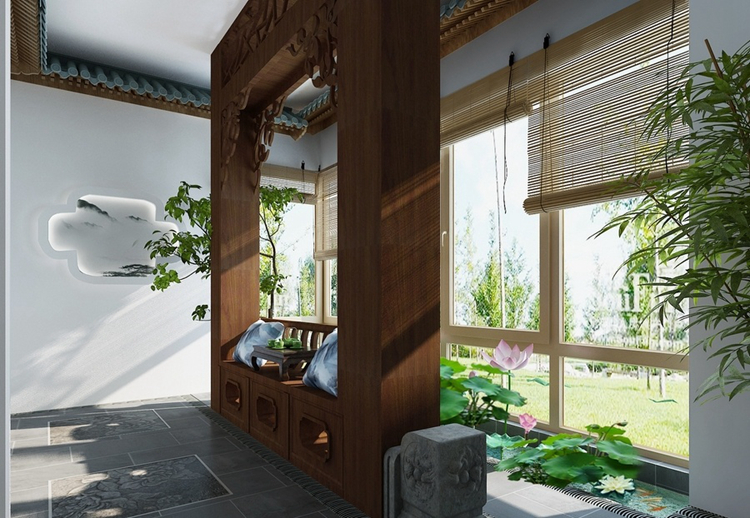 中国传统居室非常讲究空间的层次感。这种传统的审美观念在“新中式”装饰风格中,又得到了全新的阐释:依据住宅使用人数和私密程度的不同,需要做出分隔的功能性空间,则采用“垭口”或简约化的“博古架”来区分;在需要隔绝视线的地方,则使用中式的屏风或窗棂,通过这种新的分隔方式,单元式住宅就展现出中式家居的层次之美。