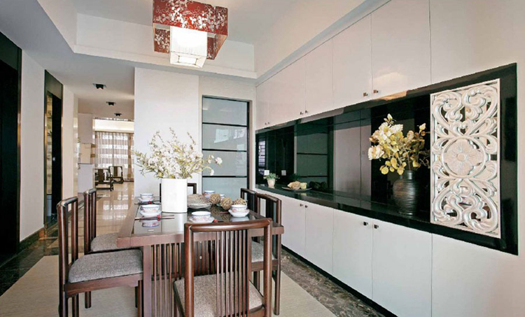 这种传统的审美观念在“新中式”装饰风格中,又得到了全新的阐释:依据住宅使用人数和私密程度的不同,需要做出分隔的功能性空间,则采用“垭口”或简约化的“博古架”来区分;在需要隔绝视线的地方,则使用中式的屏风或窗棂,通过这种新的分隔方式,单元式住宅就展现出中式家居的层次之美。