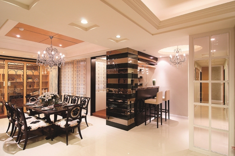 一新古典风格 新古典主义风格,更像是一种多元化的思考方式,是经过改良的古典主义风格。兼容华贵典雅与时尚现代,反映出后工业时代个性化的美学观点和文化品位。在设计上从简单到繁杂、从整体到局部,精雕细琢,镶花刻金都给人一丝不苟的印象。一方面保留了材质、色彩的大致风格,让人感受到传统的历史痕迹与浑厚的文化底蕴,同时又摒弃了过于复杂的肌理和装饰,简化了线条,极具时尚感。简约配合古典文化,浪漫与时尚气息由此而生。