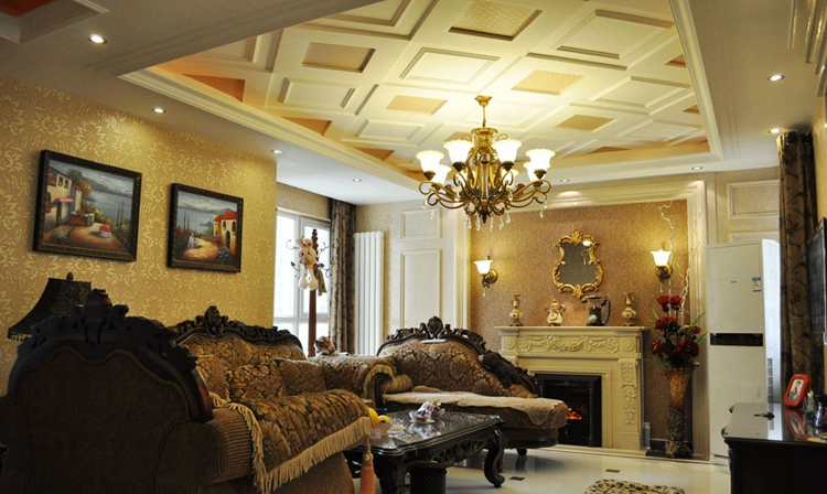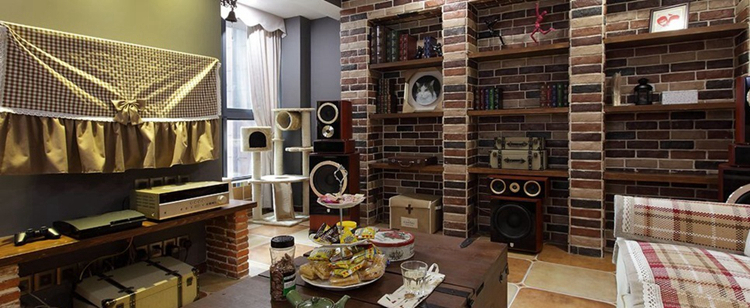 对比奢华大气的欧式风格,美式更注重细节的品质和舒适度,家具款式并不会太繁复,空间局限不大。在方正的客厅里,多用简约的布艺、同色系民族印花以及造型灯饰,为美式小家增加低调的浪漫,营造出轻美式的风格。布艺、实木、铁艺、复古砖……这些元素在客厅里都能看到的,大物件如沙发、茶几,小物件如烛台,都展露出美式的格调。