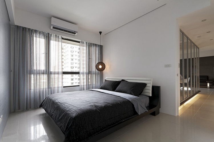 很多人觉得我们的这个案例过于简单,只能说每个人的喜好不一样,这是这对在上海奋斗的年轻业主的追求,他希望能够简洁一些,看上去更轻松一些,想回到家就能够忘掉外面世界的繁杂。所以卧室主要体现了它的一个功能性设计,没有过多的装饰表达。某些简单的家具同样可以在适当的空间中发挥它的特质。大飘窗搭配薄纱窗帘的设计,让人早晨起来就能沐浴着阳光,看着身旁熟睡的爱人,这是何等的浪漫与温馨!