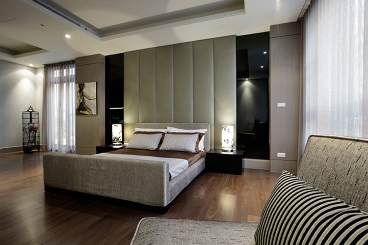 卧室的面积相对来说算是比较大的,年代感十足带有木质年轮图案的木质地板、硬朗的空间结构、一个舒适造型的沙发床、不经意的搭配融合内外空间,是精细,也是抚慰。在空间中能感受到舒适,身处其中能有精神上的享受与放松。大落地窗的设计让阳光尽情地洒进来,中午可以躺在沙发床上小憩一会,晚上可以伴着月光入眠,想想都觉得幸福。