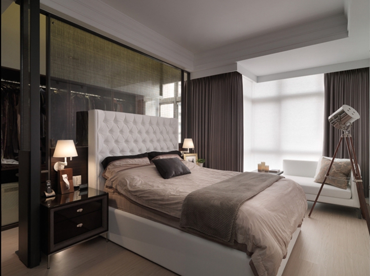卧室的颜色也和整体的颜色相符,除了温馨,朦胧的薄纱窗帘赋予整个空间一些神秘感。落地灯巧妙的造型灵动而又时尚,卧室整体的设计以人为本,空间的色彩与人性化考虑俱全,使整个空间充满灵动、活泼,为空间营造一种脱俗的气息。