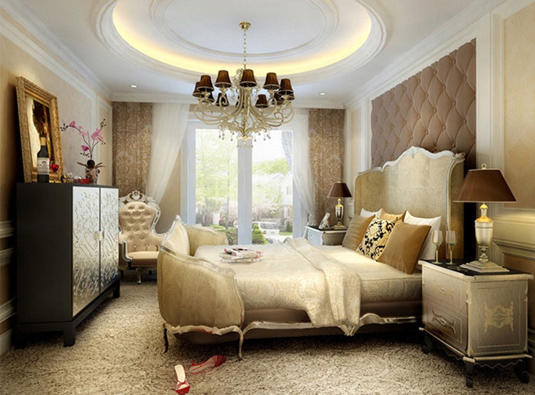 主卧的设计一眼看上去非常有层次感和通透感,小型灯池的设计和高贵的唇毛地毯交相呼应,散发着高贵典雅的气质。经典欧式造型的床具,由内而外渗透出浪漫的气息,凸显华丽的气质。落地窗的设计让光线可以任性地洒进室内,当阳光与室内的暖黄色调交织在一起,这是何等浪漫惬意的生活。