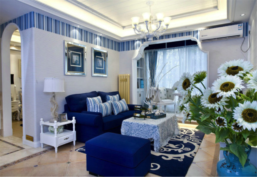 地中海风格133平家居装修,淡蓝色贯穿全局