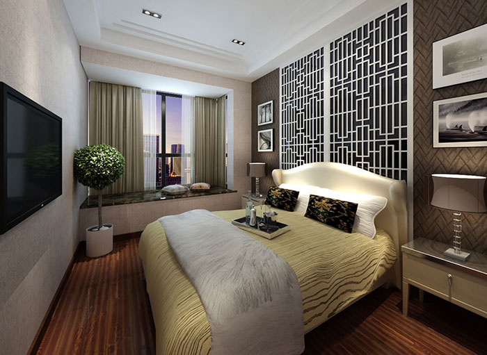 尽管空间有限,但是经过设计师合理地设计,精心的布置让小空间散发出温馨的味道。主卧室延续了整个家居的现代时尚格调,木质地板搭配暖黄色的床品和床幔,折射出主人对高质量生活品质的追求。鹅黄色,作为床品的主打色,不由得给人一种眼前一亮之感,宁静之余赋予整个空间几分时尚的气息。