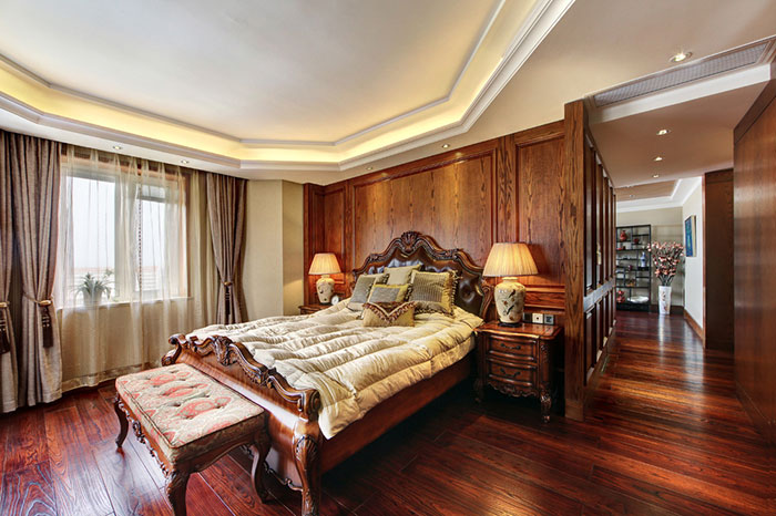 美式风格受到业主的宠爱不仅仅是因为其低调奢华的质感,更是因为其慵懒的造型和体现出来的自由让该风格也成了人们心中最舒适的家居风格。就像是本案例中的传统美式风格的床品,蓬松慵懒的造型让人恨不得立马扑上去美美地睡一觉。在奢华与极具现代气息的空间里,形成丰富的历史与艺术的精神世界。就像是被岁月洗蚀的老旧底片,回味悠长。