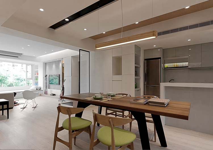 地道的北欧风格装饰理念反映在家庭装修方面,就是室内的顶、墙、地六个面,完全不用纹样和图案装饰,只用线条、色块来区分点缀。这种风格反映在家具上,就产生了完全不使用雕花、纹饰的北欧家具。