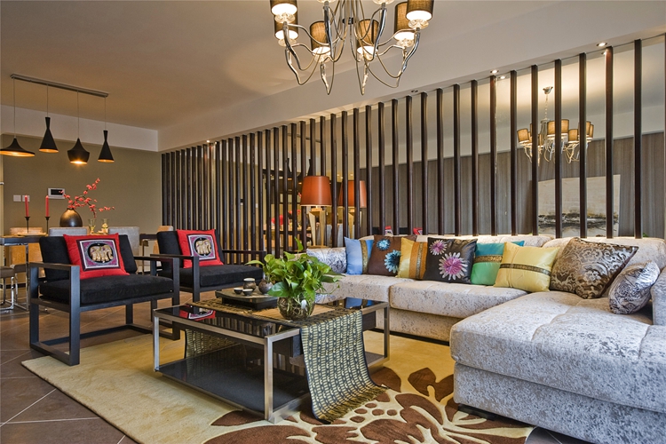 紫苹果别墅装修公司设计师陆老师擅长中式和新中式风格的设计,根据业主的要求通过新中式的装饰让整个空间焕发生机。无论是鲜花绿植还是尽显民族风的抱枕,一抹绿、一丝黄,各种暖色融合在一起,就像是春天的百花园在用色彩表达它的情感。素雅的棉麻布艺搭配丝绸材质的桌旗,就像是刚与柔的结合,演绎着冬雪消融初春来临的时节。