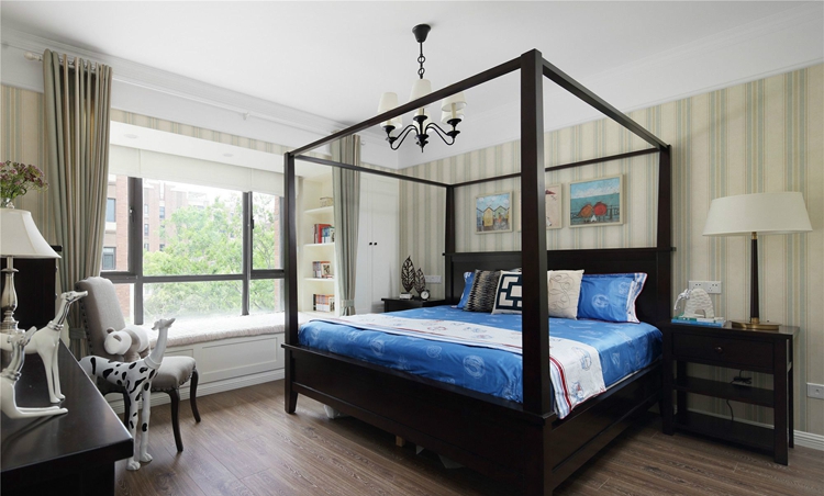 卧室的设计向来以温馨感和舒适性为主,所以无论是何种风格的家居设计,卧室的设计向来是删繁就简,不一定要多花哨,舒适就好。其实我觉得不一定要多花哨,舒适就好。条纹相间的壁纸与深色的木质地板,不浮躁不奢华,却带给人沉淀、深厚、悠久醇香的感受。