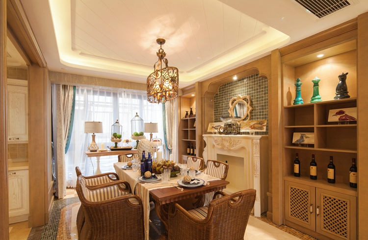 紫苹果别墅装修公司设计师陆老师在设计餐厅时除了营造温馨感之外力图通过木质家具将整体空间更加木色木香,还带着一种浓浓的禅意。精致的鎏金铁艺吊灯从顶上垂下暖色的灯光,带有历史的沧桑韵味。精致的餐具与优雅的桌旗搭配,再加上造型舒适的座椅,让整个就餐空间变得格外惬意。