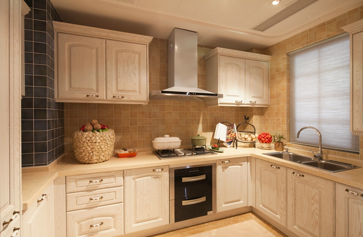 厨房的设计,多用象牙白色调来装点,毕竟厨房是一个强调功能性和实用性的空间,避免了古典风格带来的沉闷。同时U型餐厅的另外一个好处就是实用性与美观性更佳,有足够的活动空间,最大化地利用了空间,在厨房做饭时可以灵活的走动也不怕会碰到,以人为本的设计理念得以彰显。
