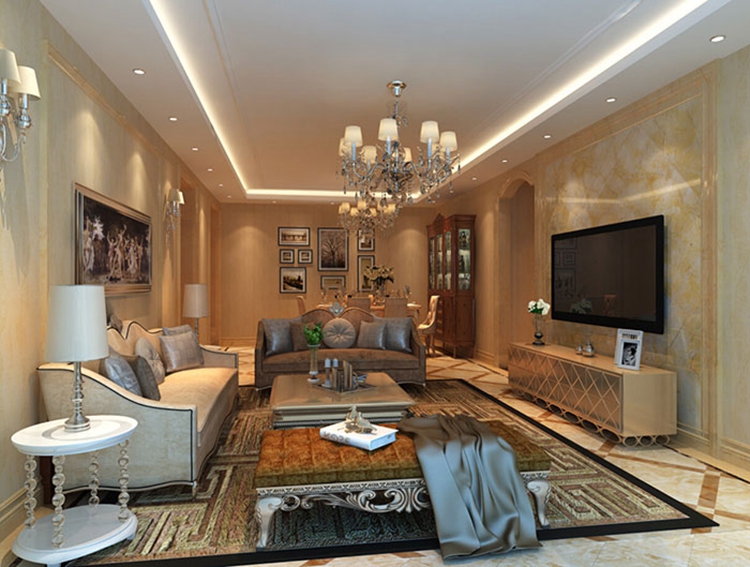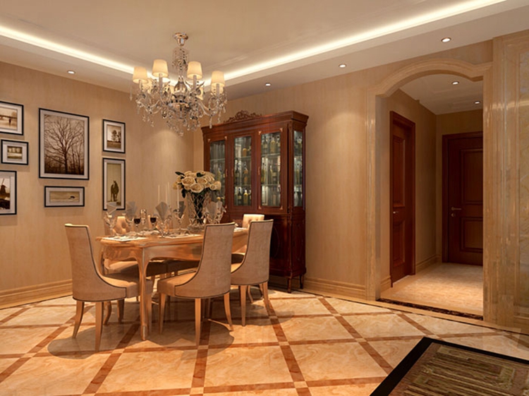 紫苹果别墅装修公司设计师黄老师在设计该户型时考虑用流动的线条和明快的色调来打造小户型装修成欧式的精致。光洁亮丽的大理石瓷砖,看起来质感硬朗,奢华气派。提到欧式风格当然少不了水晶灯了,雅致典雅的水晶吊灯低垂,垂下温暖浪漫的灯光,与整体的色调协调自然地融合在一起,充满强烈的动感效果。