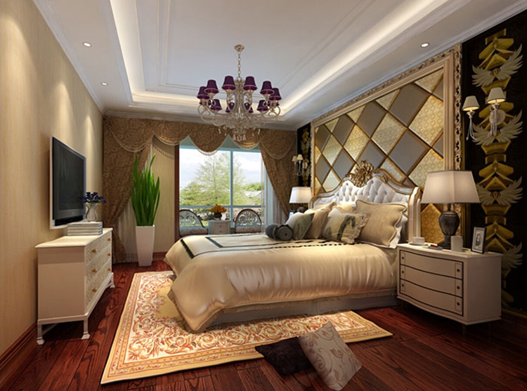 卧室是个强调功能性与实用性的空间,一般设计师在设计时多考虑这两点。但是当今人们需要的是实现功能性的同时要有美感,紫苹果设计师在设计时采用亮丽的色调来和原木材质的古典沉闷相抵消,整体的色调和谐自然没有突兀感。色彩虽说不上华丽,但是依旧有着欧式的元素,只为营造舒适的休息空间,夜晚躺在床上在静谧的时光中沉沉睡去。
