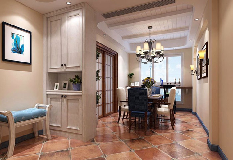 紫苹果别墅设计公司曾老师设计餐厅时考虑通过一个实用性的“隔断”来作为过渡,既可以起到装饰的作用,又不与功能性有所冲突。将本来开放式的布局做个半隐蔽的设计,这样既可以保证每个空间的私密性又保证了一家人安静祥和的就餐氛围。餐桌倚窗而放,保证了室内充足的光线,即使在晚上也可以伴着窗外朦胧的月光一家人幸福地聚在一起享用美食,享受着美食带来的味蕾上的最原始的幸福感。