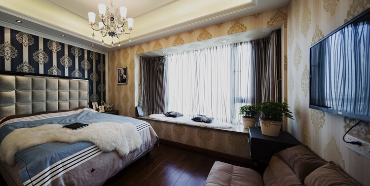 现在比较流行飘窗和榻榻米的设计,一是因为其将空间利用实现最大化,其次就是功能性和实用性比较强,就像是该案例中的飘窗设计。在闲暇的午后倚在墙上,沐浴着春天温暖的阳光,舒心惬意,带给人精神上的放松。同时软包设计床头背景墙,与床尾的造型慵懒的沙发将卧室空间本该有的舒适性和实用性一一实现,别具一格的空间感带给人高品质的生活享受。