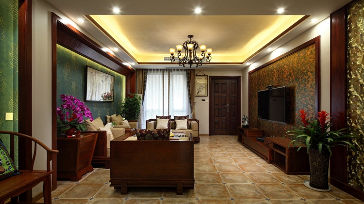 紫苹果别墅设计公司设计师黄老师说新中式风格之所新是新在“吐故纳新,传承鼎新”,通过现代设计理念以另一种时尚清新的方式来表现传统的中国文化。就像是本案例中的客厅色彩明丽淡雅,虽不像传统中式古朴厚重,但是营造出的是一种脱俗的气息。简练的线条、清新而又活泼的色调组合、古色古香的摆设,洋溢出的是东方低调的内敛之美。
