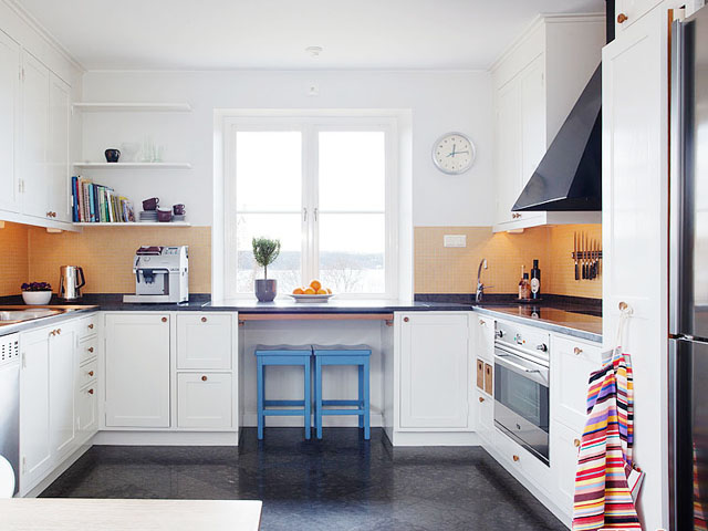 厨房空间最重要的实用性与功能性设计,U型造型的厨房,空间利用率更高,功能区域划更为明确,方便操作,方便了一家人的生活起居。五彩缤纷的围巾随意地搭在橱柜上,将开放式的厨房点缀的多彩丰富。米白色的橱柜与纯白色的墙壁就像感受到夏日里的一缕清风,夏日清凉,心飞扬!额,怎么有一种某洗发水的感觉,好像有点帮人打广告的嫌疑。