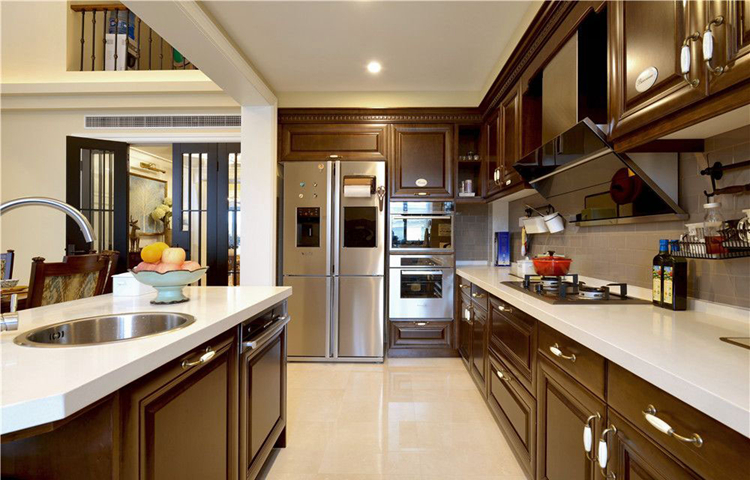 国内厨房装修普遍存在的一个现象就是空间小,东西多,换风差,油烟重,导致厨房充满油烟味,而且极难清理干净。今天上海紫苹果别墅装修公司就给大家分享一些心得,有效解决厨房设计中的一些设计问题,下面一起来看看100多平房子厨房装修效果图。
