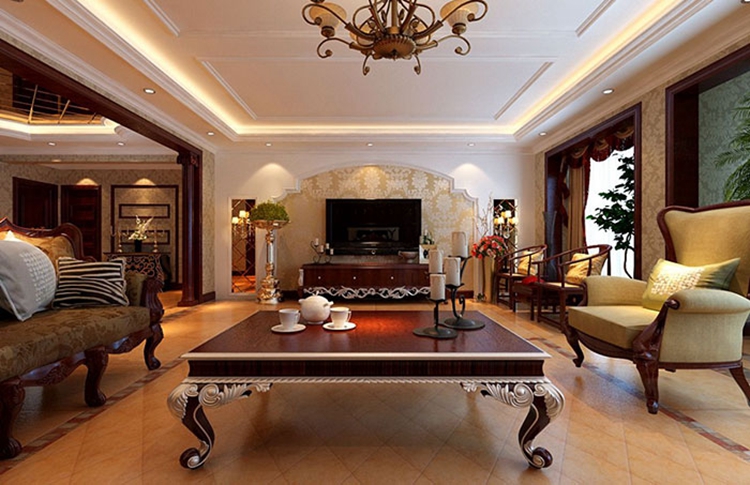 紫苹果别墅装修公司设计师黄老师尤其擅长这种大气而又奢华的欧式、中式风格。他认为欧式风格更多的是强调线条流动的变化,通过像猫脚家具这种造型精致的工艺和华丽的色彩来表现整体的尊贵奢华的气质。浪漫主义是它最明显的特征,常用大理石来表现欧式另一面硬朗的质感,华贵精美的地毯彰显其主人华丽雍容的生活品位。