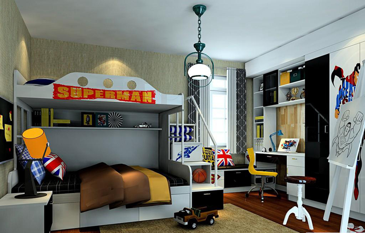 把孩子的空间设计得五彩缤纷,不仅适合儿童天真的心理,而且鲜艳的色彩会激发起希望与生机。对于性格软弱过于内向的孩子,宜采用对比强烈的颜色,刺激神经的发育。而对于性格太暴躁的儿童,淡雅的颜色则有助于塑造健康的心理。