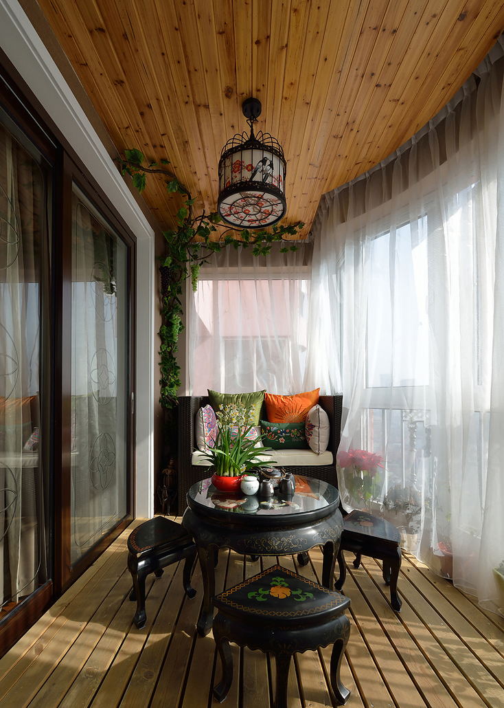 开放式阳台怎么能少得了舒适的摇椅、沙发呢,泡杯茶捧本书就可以消遣整个午后的恬觅时光。