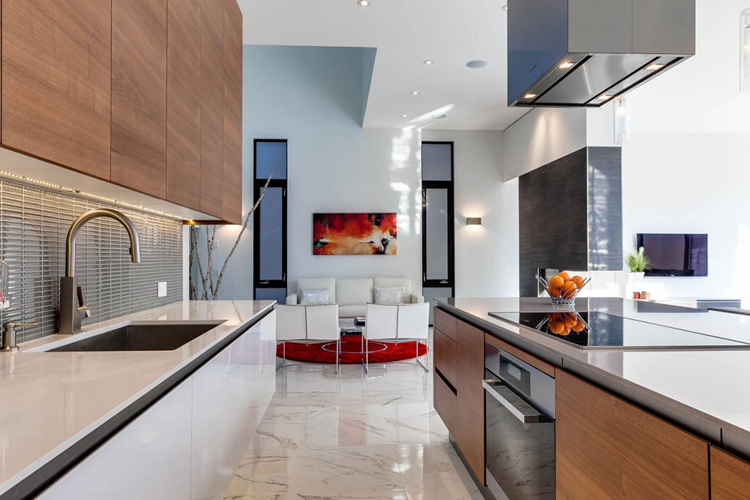 以厨房地板来看,大理石及花岗石是经常被使用的天然石材,这些石材的优点是坚固耐用,永不变形,并有良好的隔音功能。