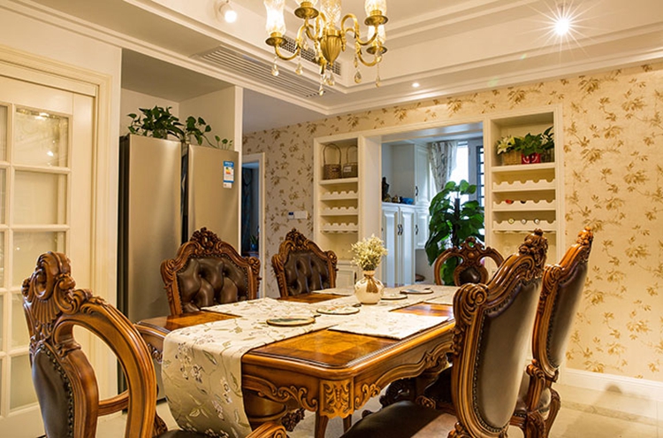 亮色的软装挂件和鲜花绿植,让整个空间从沉闷中被打破。不论餐桌椅等家具还是窗帘,在细节之处都有休闲美式的影子,同时又能从细节中透出英式的浪漫。不仅不会让人感到突兀,让两种风格彼此独立存在,还能让空间保留两种风格本质的精神,融为一体。