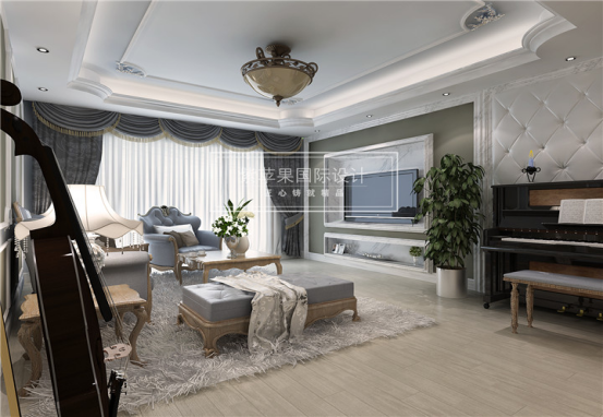 踏入客厅的一瞬间就会被她的气质深深折服,高贵,冷傲,贵族范十足。格局整齐,完美的天花拱顶,搭配法国民族特色的吊灯,徜徉在法式浪漫的精神世界。搞对的羊毛地毯,现代感十足的优雅家具陈设,艺术气息浓厚的钢琴和大提琴摆设,气质凝练,彰显着主人的艺术追求和对生活的热爱。