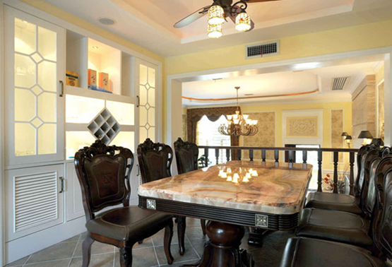 欧式风格给人的第一印象就是奢华、贵气,尤其是大型灯池和blingbling“亮瞎眼”的水晶灯的使用,大量采用象牙白和乳白色与各类金黄、银白完美契合,另外一些欧式的罗马柱和壁炉等一些传统造型设计,形成了特有的豪华、富丽风格。