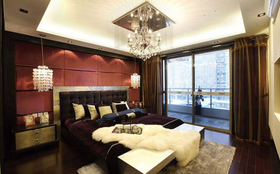 紫砂红的床头软包设计,搭配酒红色的床品和高贵的羊毛床幔和地毯,让整个空间有了质感。对称的壁灯设计,温馨浪漫,丰富饱满的空间设计让人倍感温馨。在纷繁的世界里,焕发出独特的表现力和持久的生命力。静聆人生絮语,轻抚岁月脚步,感悟属于自己的完美空间,心灵也就轻盈起来了。