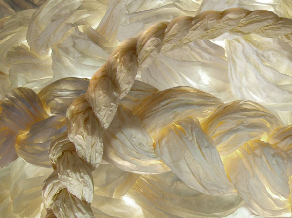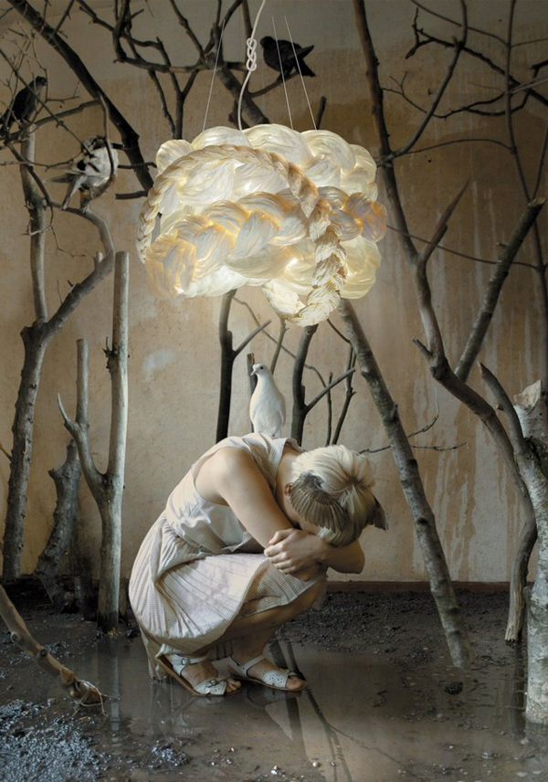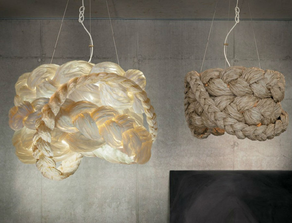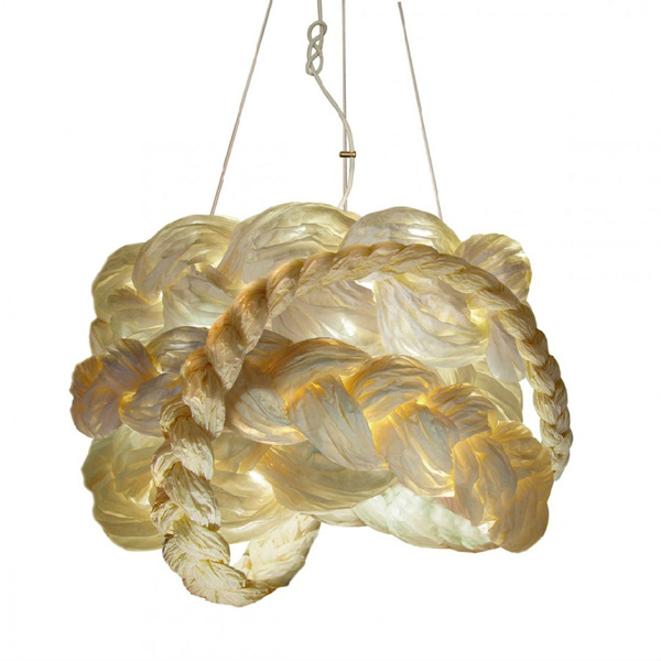 来自mammalampa的一款设计。有吊灯和地灯两种款式。利用柔软的纸张,褶皱与编织的双重肌理,mammalampa用纸表达的轻盈的体量感。
