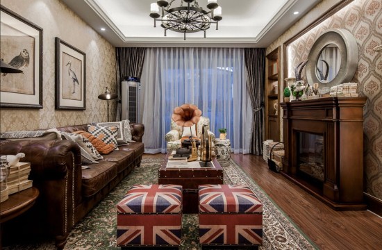 在豪华别墅装修设计中,美式复古风格独具其魅力。在客厅的装修设计中,无论是选用略显陈旧的皮质沙发还是木箱样式的茶几,或是古老的留声机亦或是羊角装饰品都透露着复古气息。而那印花地毯则提升了整间客厅的整体格调,富有奢华贵气。
