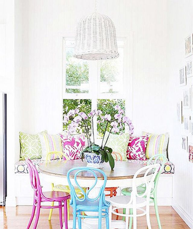 前方是充满童真可爱风格的餐桌设计,后方的飘窗反而不仅仅是用来休息和坐卧的,倒成了整个空间很不错的装饰物。