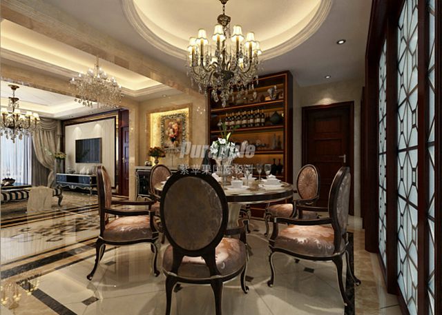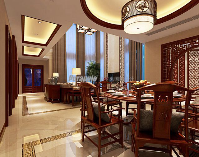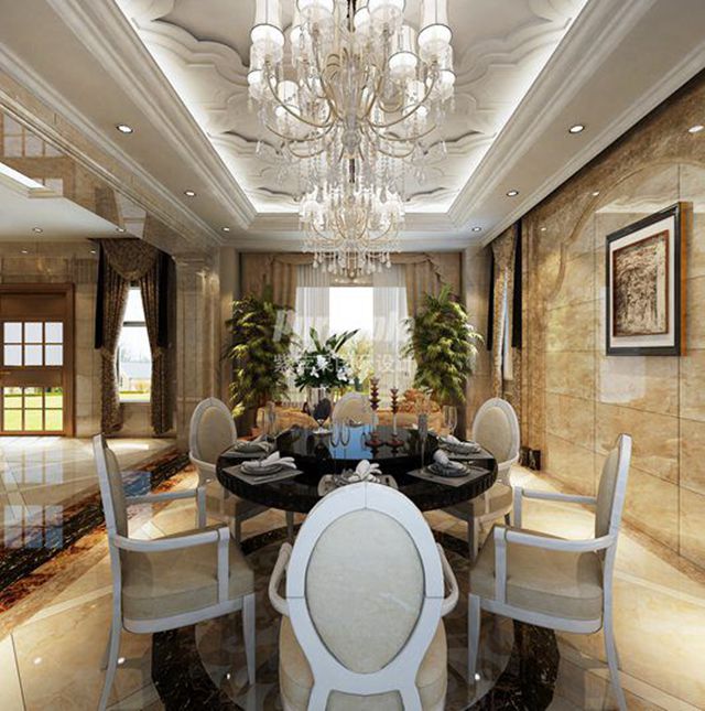 中国的别墅餐厅装修设计,非常讲究原则,讲究一家团圆,餐桌有的设计成圆形,有的设计成方形,但都寓意着家庭的圆满和谐。