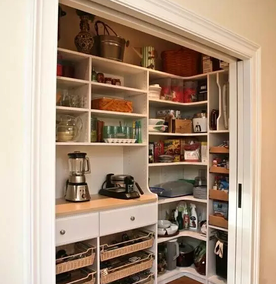 不管是夹缝收纳架、收纳筐,都是不能缺的,好好利用吧,它们真的可以帮上你大忙。