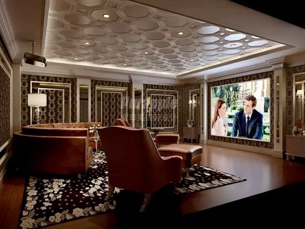 影视厅:空间的壁纸具有经典却更简约的图案,复古却又时尚的色彩,古典家具,印花地毯,凸显空间的恢弘大气。影视厅满足家里所有人的休闲娱乐活动,当三代同堂,共处一室,营造出其乐融融的欢乐气氛一定让旁人羡慕不已!