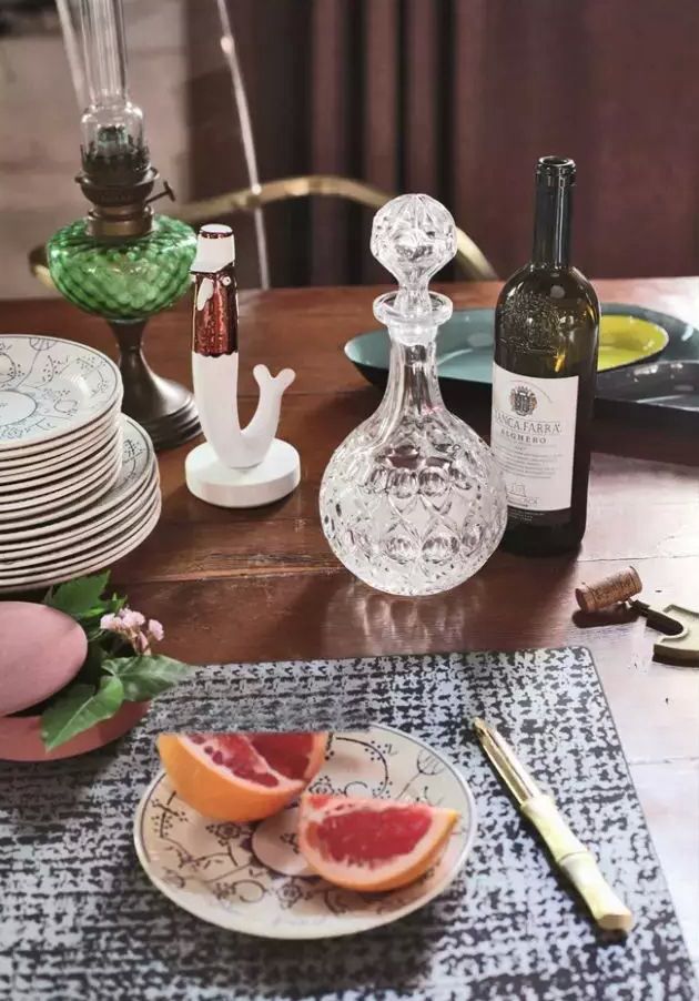 晶莹的水晶醒酒器讲述着曾经的奢华与典雅,而旁边的趣味陶瓷摆件却是将现代工艺与审美淋漓呈现。于是典雅不再沉闷,趣味不再轻浮,眼前的一切变得精致且品位不俗。