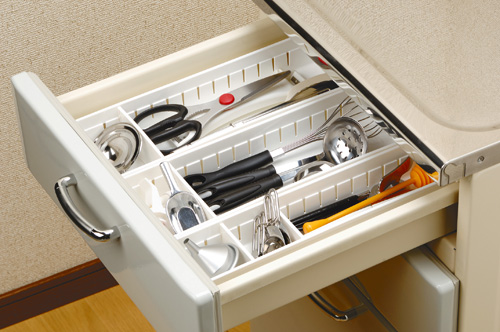 厨房中最多的柜子和抽屉,所以抽屉的空间自然是要好好利用。抽屉收纳,最关键的是要有序排放。如果想让抽屉有序收纳,大家可以购买抽屉分割器,这在许多家居店里都可以买到,在部分五金商店也可以购买。你也可以购买一些价格比较低的餐具盘,上面一般都划分好了放刀、叉、勺子的地方。抽屉收纳最需要晋级的就是,不要把抽屉当做废品收购站,把任何不需要的东西都往抽屉里扔,那样基本就是厨房杂乱的开端。