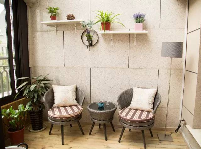 老人房间:老人房间的色彩设计更加稳重,雅致,真丝手绘的花鸟壁纸让房间于典雅中多了几分生机勃勃。设计师将阳台充分利用,摆上几株绿植,悠闲椅,打造成一个花香鸟语,舒适惬意的休闲圣地。
