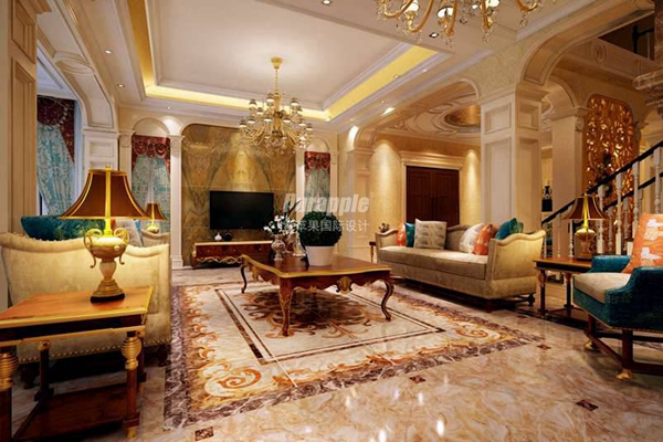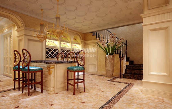 整个方案在室内环境中力求表现悠闲、舒畅自在、但不缺大气华丽的空间。别墅的一层主要为家庭以及简易会客厅,这也是别墅的主要入口区域,因此在空间上尽量的做到开阔、大气、奢华的氛围。别墅的主要活动、娱乐区域设置在负一楼,负一楼因建盖别墅的地形原因,有主要的后花园,再加上高挑的会客空间,加上厨房餐厅同时设置在这一层,让整个空间方便使用的同时显得高贵大气,再搭配古典家具以及绚丽的色彩,呈现出年轻业主的品味人生。别墅的二层是相对私密的休息空间,配有主卧室和女儿房,均配有独立的卫生间和衣帽间,加上一个小的公共起居室,给家人一个温馨和优雅的休息空间。