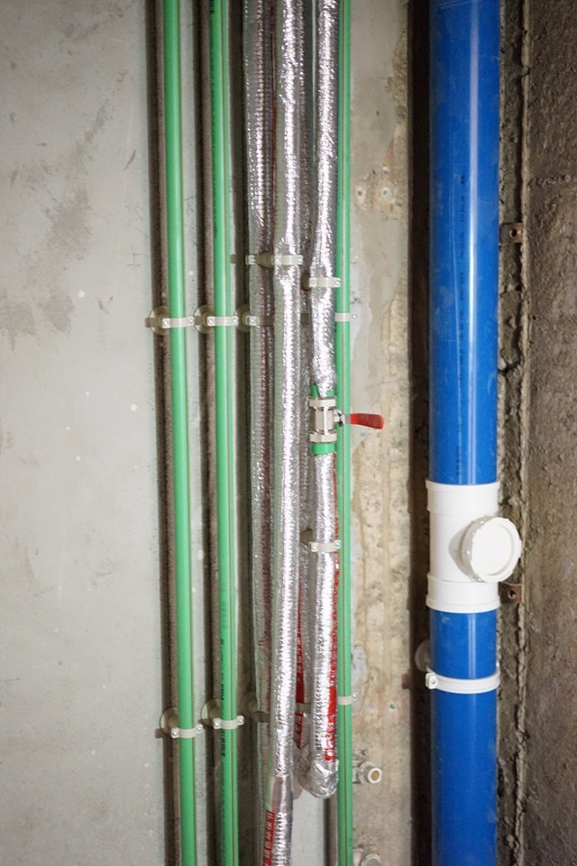 水管标准排布,热水管保温处理▲