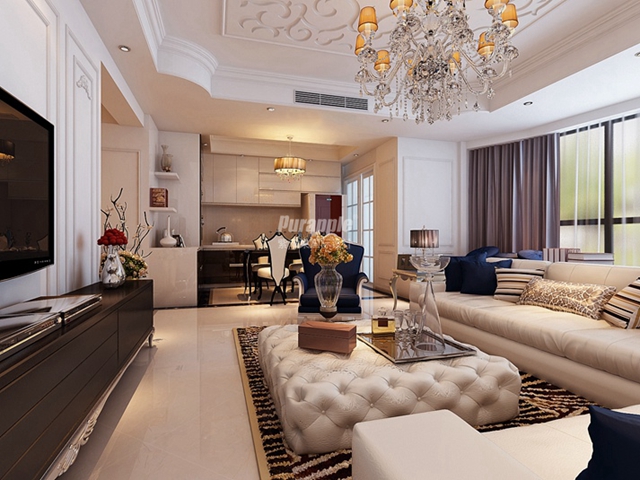 本案位于上海市中心的黄金地段,紧邻黄浦江,与外滩金融中心相接壤,同陆家嘴金融贸易区隔江相望,观景落地窗将黄浦江的美景一览无余,得天独厚的地理位置赋予了此居本身的尊贵。本案的主人是一对85后小夫妻,虽然年轻但是对家有自己独特的品味,喜欢干净明亮的空间,但是又不失古典韵味与内涵。此设计中我们舍弃了繁琐复杂的欧式元素,用简单的欧式线条延承了它的大度和精致。无论是家具还是配饰均以其优雅、唯美的姿态,平和而富有内涵的气韵,描绘出居室主人高雅、贵族之身份。