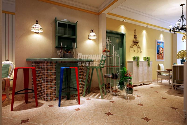 马赛克镶嵌、拼贴在地中海风格中算较为华丽的装饰,另外经常会利用小石子、瓷砖、玻璃片、玻璃珠等素材,切割后再进行创意组合。