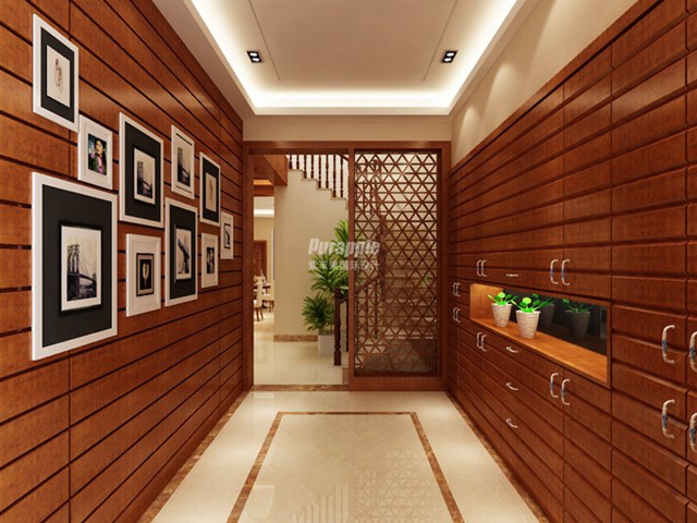 本套案例,采用大量的原木来装饰,简洁素雅,温馨舒适。细节处做的非常好,玄关收纳、装饰两不误,客厅、餐厅均设置内嵌式壁橱,收纳东西,既整洁又节省空间。